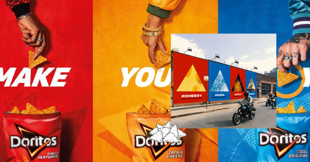 Doritos is a masterclass here. Loud colours, high contrast, oversized graphics, playful tone. Everything reflects the intensity of the product itself. You don’t just see a Doritos ad, you feel it.
